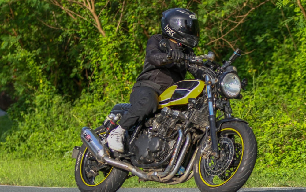 On my XJR 400, Pando Moto gear proved its worth Air Tate jacket stayed protective when wet, Karldo jeans resisted…