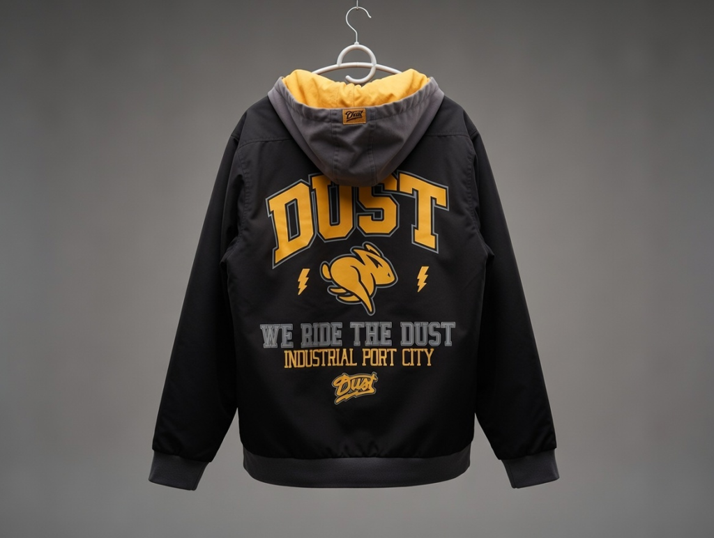 But flip it around, and you’re greeted with a bold varsity-style print featuring the brand’s signature Dust rabbit and motorcycle graphics. It’s eye-catching without being obnoxious, striking that sweet spot between rider culture and urban fashion. The high-density embroidered Dust logo on the chest adds another layer of legitimacy this isn’t some quick cash-grab merch; it’s thoughtfully designed apparel.